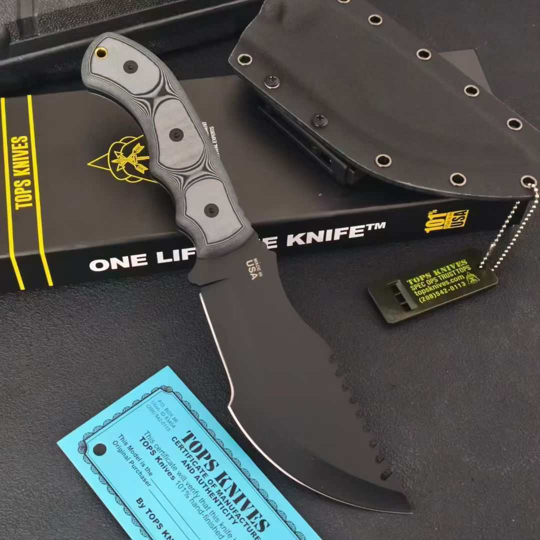 This D2 Steel Fixed Blade Survival Knife is built for toughness and reliability in the wild. Crafted with D2 high-carbon tool steel, it delivers excellent edge retention and cutting performance. The full tang construction ensures durability and strength, while the glass-fiber nylon handle offers a firm, ergonomic grip for precise control. Available in satin finish or black coated version, this knife combines functionality, power, and style — perfect for outdoor, hunting, or tactical use.